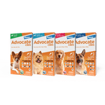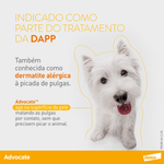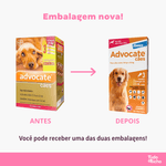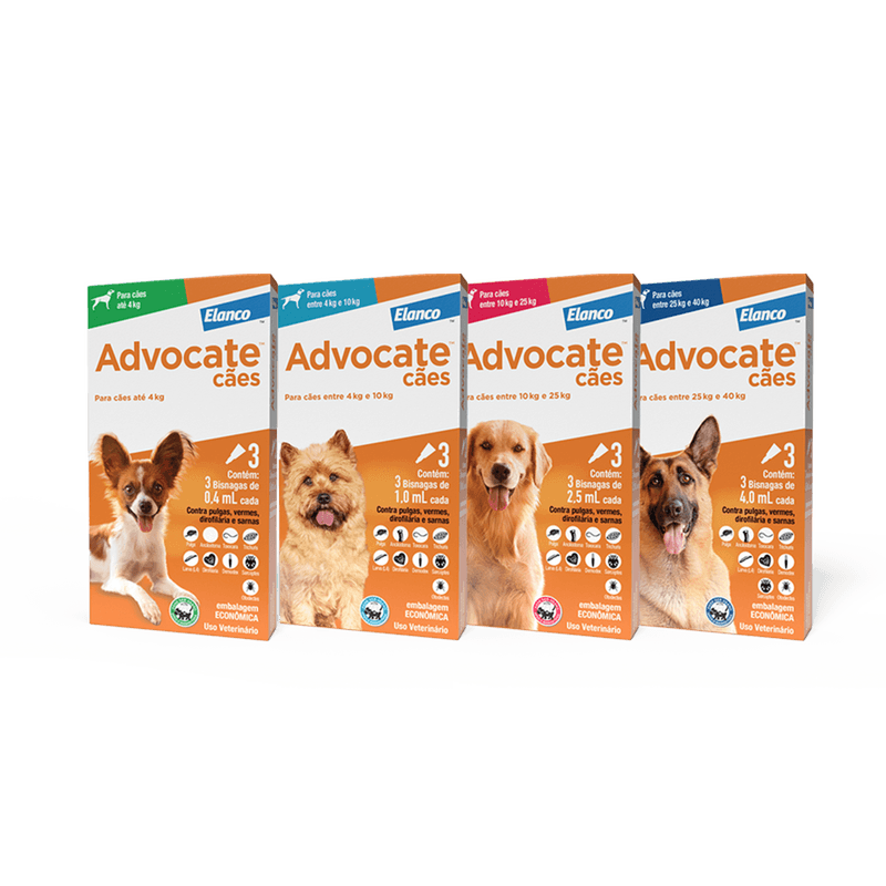 Advocate Cães, tem uma fórmula exclusiva de aplicação tópica, combina em uma única dose mensal, tratamento e prevenção contra pulgas, vermes intestinais, verme do coração e sarnas.