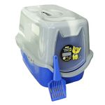 Além de vir com uma pázinha de limpeza, o banheiro também acompanha um filtro de carvão ativado que neutraliza os maus cheiros e auxilia na ventilação. Possui uma porta prática de fácil entrada e saída para o gato.