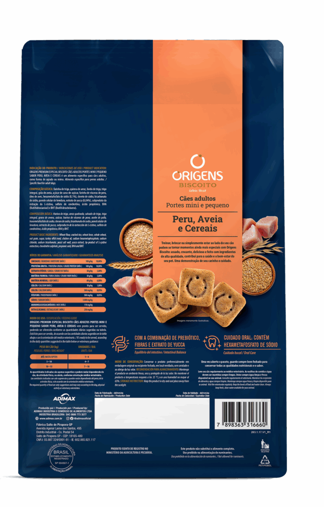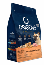 Origens Biscoito é uma linha de alta qualidade para cães filhotes e adultos. Indicado como recompensa e agrado, os biscoitos Origens oferecem variedade de sabores e podem ser encontrados em versões para diferentes portes. É um petisco saudável e saboroso com ingredientes como banana, maçã, aveia, frutas vermelhas, linhaça, peru e cereais.