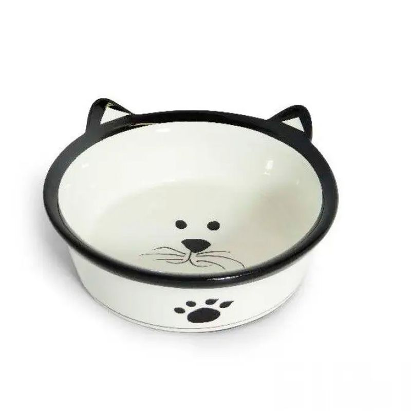 Comedouro Gatos The Pets Porcelana Carinha Gato Preta