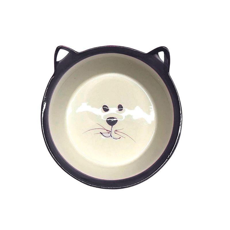 Comedouro Gatos The Pets Porcelana Carinha Gato Preta 350ml