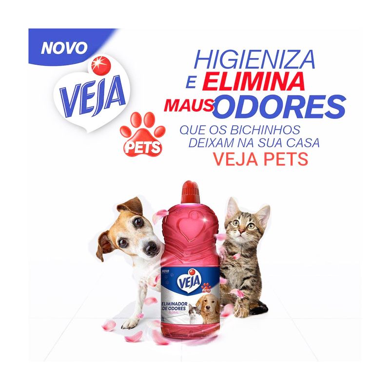 O Eliminador De Odores Veja Pets Floral é uma opção perfeita para desinfetar e limpar locais onde haja resíduos de cães e gatos, proporcionando um agradável aroma de limpeza e perfume.