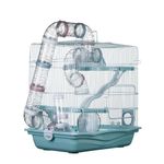 Além disso conta também com uma rodinha de exercícios e tubos que passam pelo lado externo da gaiola e podem ser montados de acordo com a sua preferência, cooperando para que o animalzinho mantenha uma rotina de exercícios auxiliando no combate de doenças musculares.