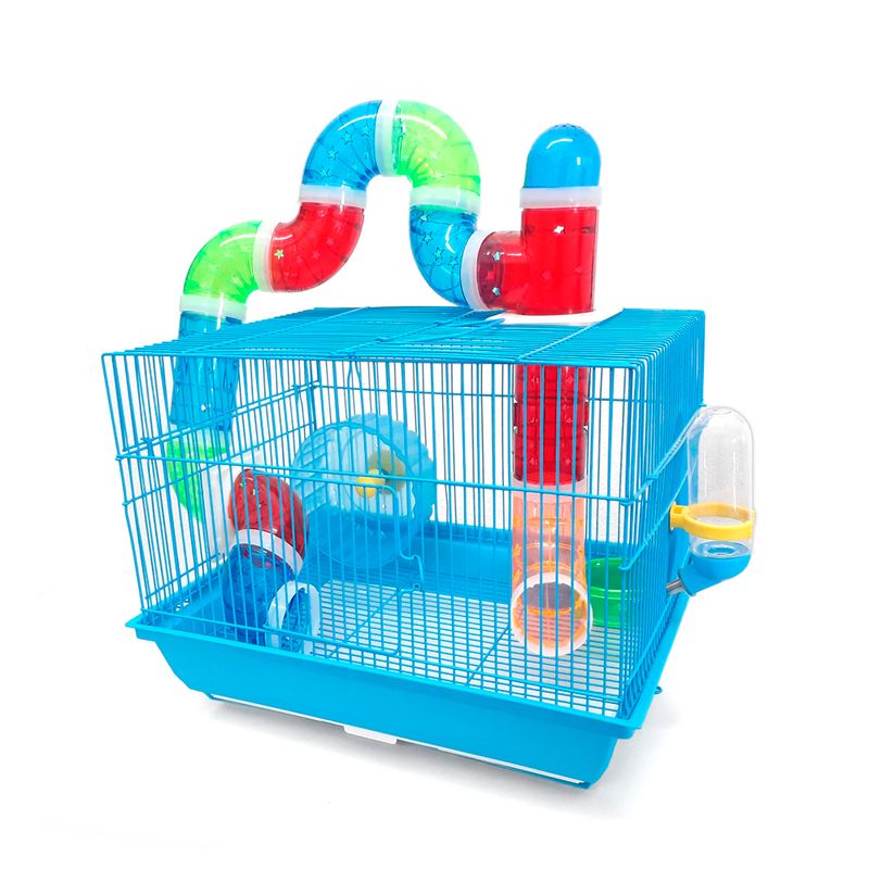 Com diversos acessórios que deixam a gaiola ainda mais atrativa. Com tubos que passam pelo lado externo da gaiola e podem ser montados de acordo com a sua preferência. Possui três entradas para tubos, além da possibilidade de aumento do túnel.
