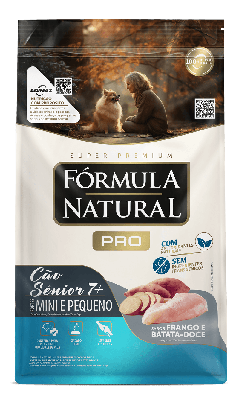 Oferecer uma nutrição de alta qualidade, que favoreça a saúde e a longevidade ao longo do processo de envelhecimento é fundamental para a qualidade de vida e o bem-estar de cães **a partir de 7 anos de idade**. Por isso, Fórmula Natural Pro Cão Sênior foi formulado levando em conta as particularidades dos cães idosos, oferecendo cuidados específicos para esta fase da vida.