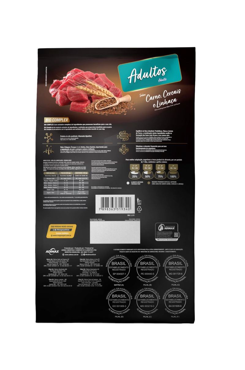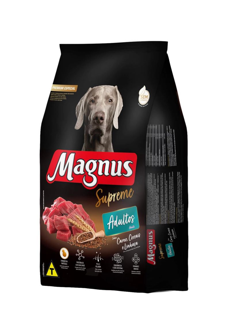 Magnus Cães Supreme Adultos Carne e Cereais é um alimento completo para cães adultos.