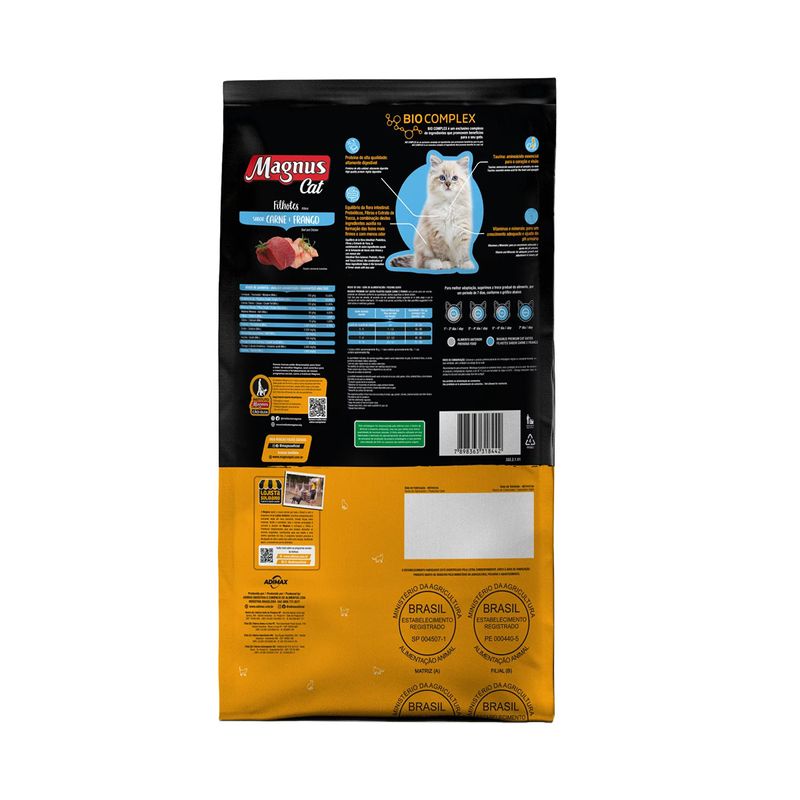 A Magnus Cat Premium Gatos é um alimento completo, fresco, preparado com ingredientes de alta qualidade. Nutritivo e saboroso, agrada ao paladar diferenciado do gato promovendo benefícios a sua vida. A linha sem corante conta com proteínas de alta qualidade e altamente digestível. Além disso, por ter prebióticos, fibras e extrato de Yucca, coopera para o equilíbrio da flora intestinal para o seu gato ter longevidade. Rica em vitaminas e minerais para um crescimento adequado e ajuste do pH urinário. Com Taurina, aminoácido essencial para o coração e a visão.
