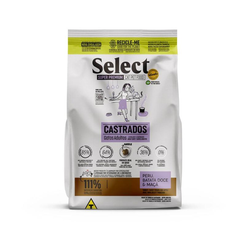 A Monello Select Gatos Adultos Castrados é uma ração super premium especialmente desenvolvida para atender às necessidades nutricionais específicas de gatos castrados.