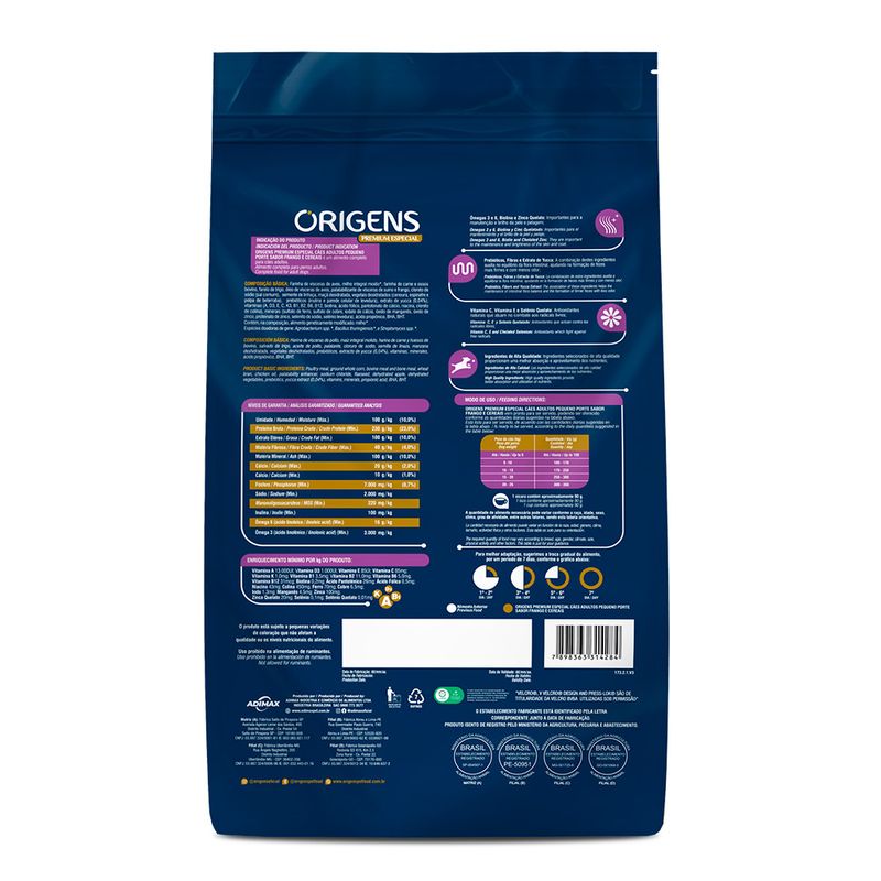 Ração Origens Cães Adultos Frango e Cereais Raças Minis e Pequenas
