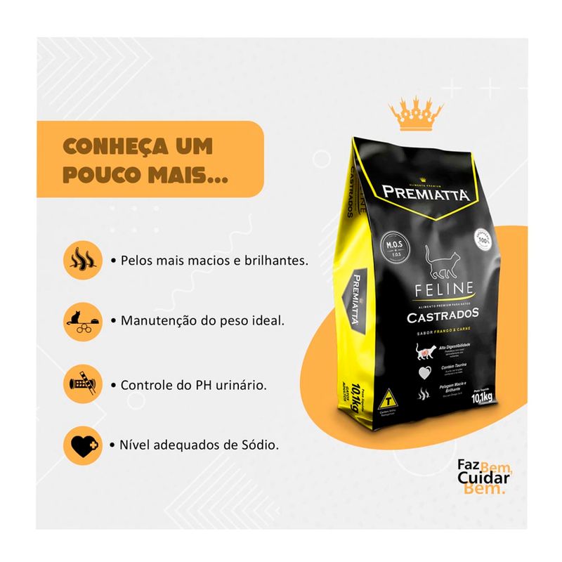 A Ração Premiatta Gatos Adultos Castrados é ideal para proporcionar uma dieta saudável e rica em nutrientes para o seu bichinho.