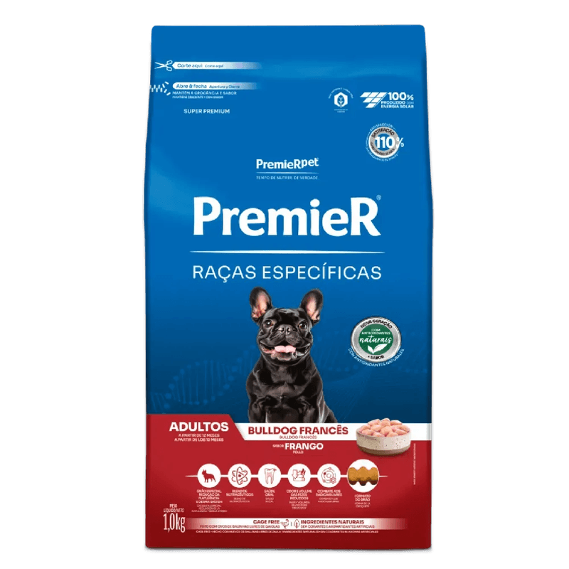 Ração Premier Raças Específicas Bulldog Francês Cães Adultos Frango