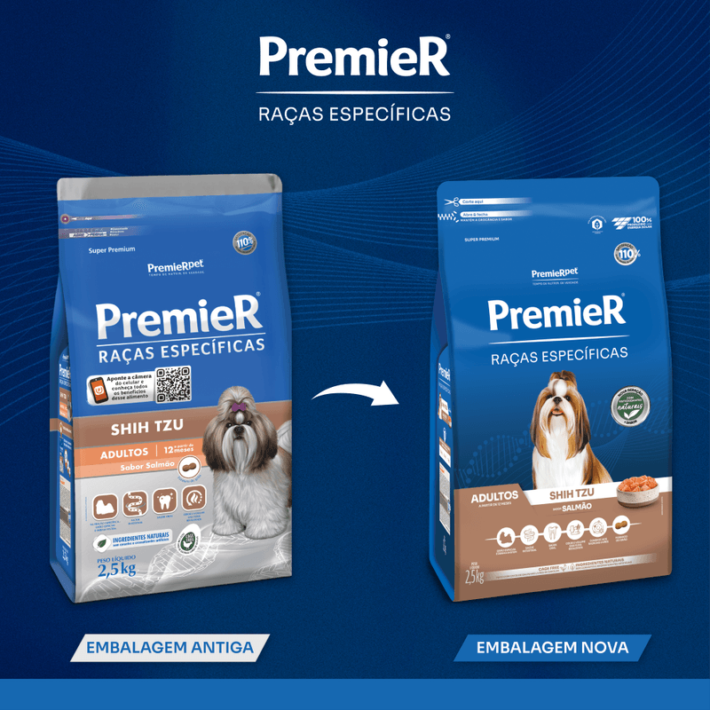 PremieR ShihTzu Adultos Salmão foi formulada a partir deste conceito e oferece tudo o que esta raça precisa para manter sua saúde e beleza aliado ao exclusivo sabor salmão. Uma nova e exclusiva opção oferecida pela PremieRpet.